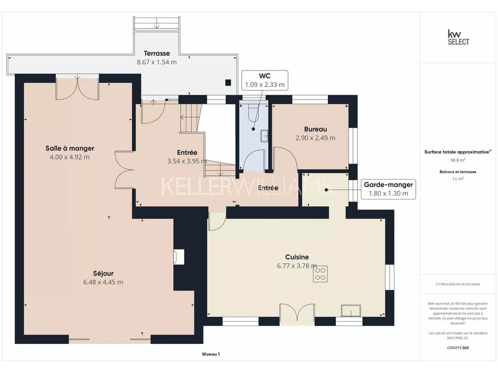 • Cuisine équipée avec coin repas quotidien, garde-manger et accès à une seconde terrasse