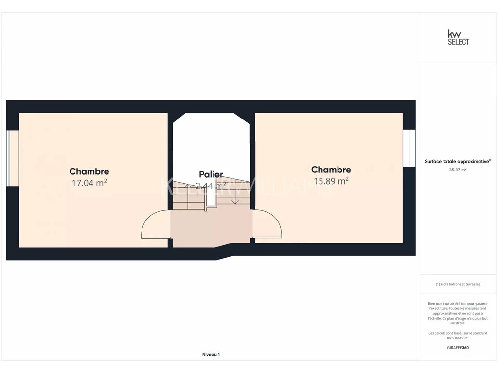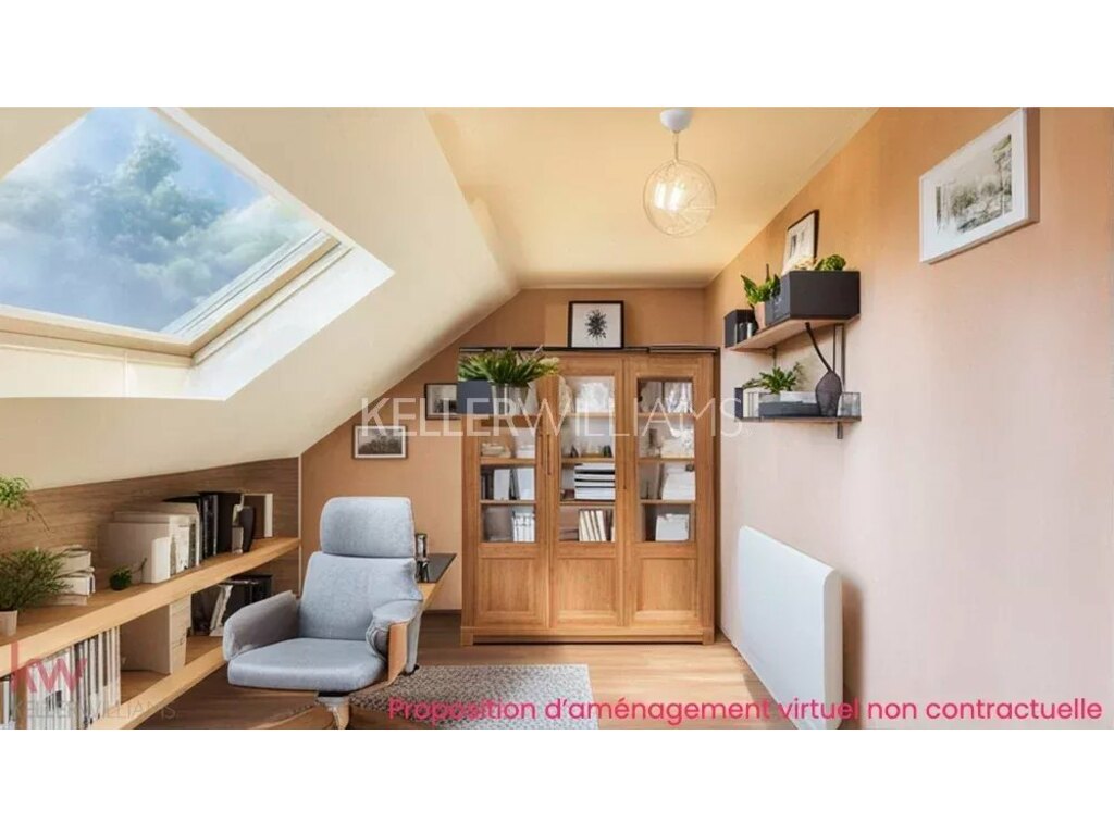1er étage : Chambres cosy et spacieuses et un grenier aménagé, pouvant servir de bureau ou être transformé en une troisième chambre.