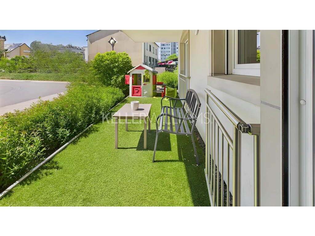 - Terrasse d’environ 15 m², accessible depuis le séjour et une chambre,