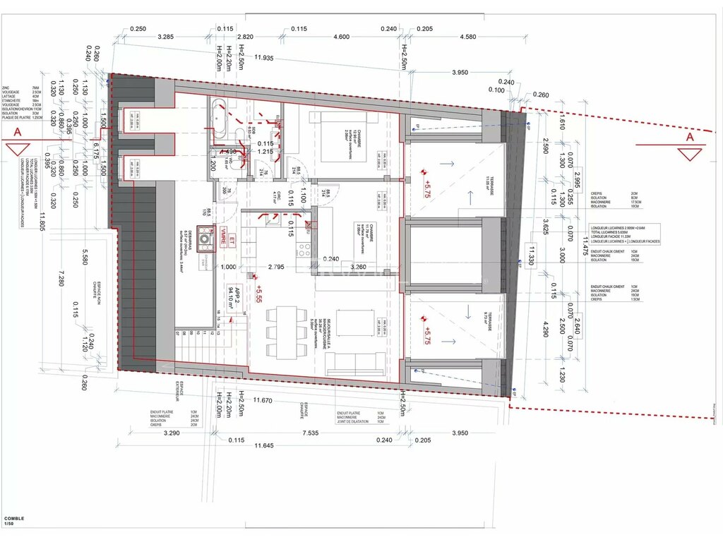Les espaces communs et les appartements sont répartis sur deux niveaux pleins et un étage comble suite: