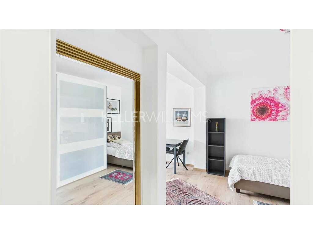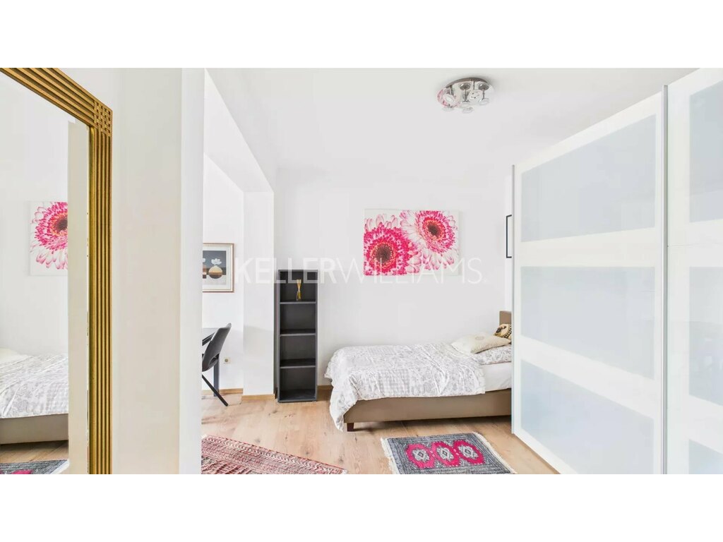 • Cuisine séparée, entièrement équipée, avec accès au balcon et machine à laver Miele installée en 2025