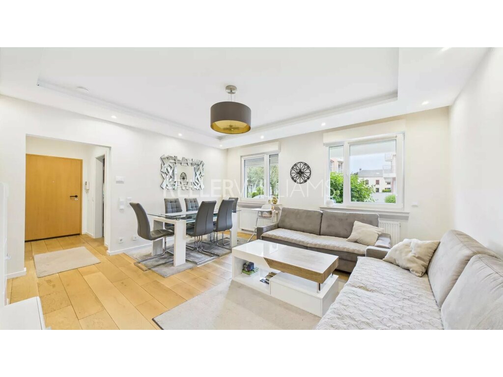 Situé au rez-de-chaussée d’une résidence familiale, dans une rue calme sans issue d’Alzingen, cet appartement de 77 m² séduit par sa luminosité, sa fonctionnalité et son agencement optimal.