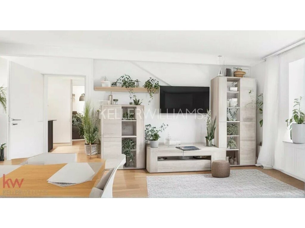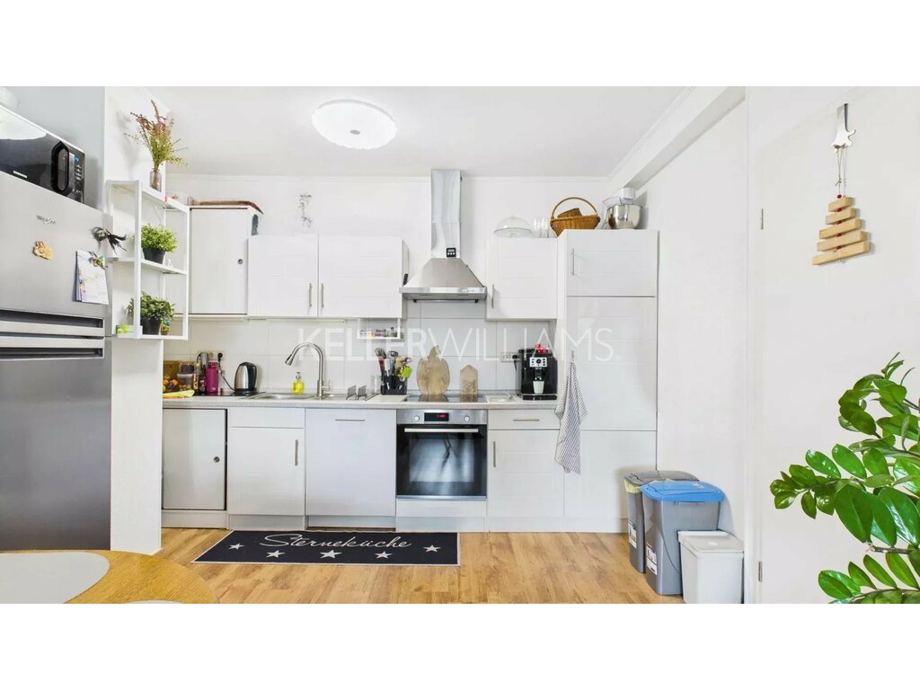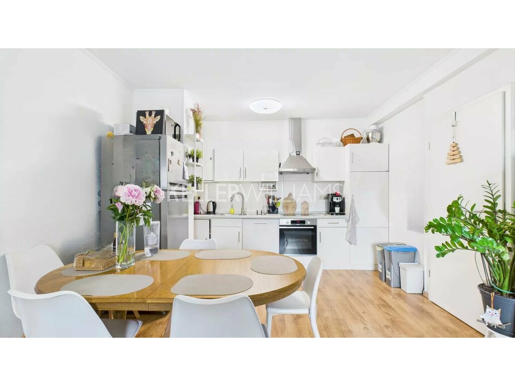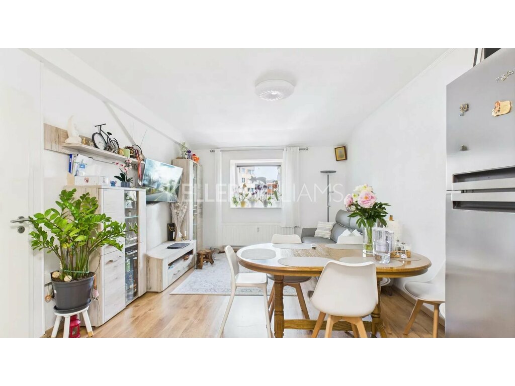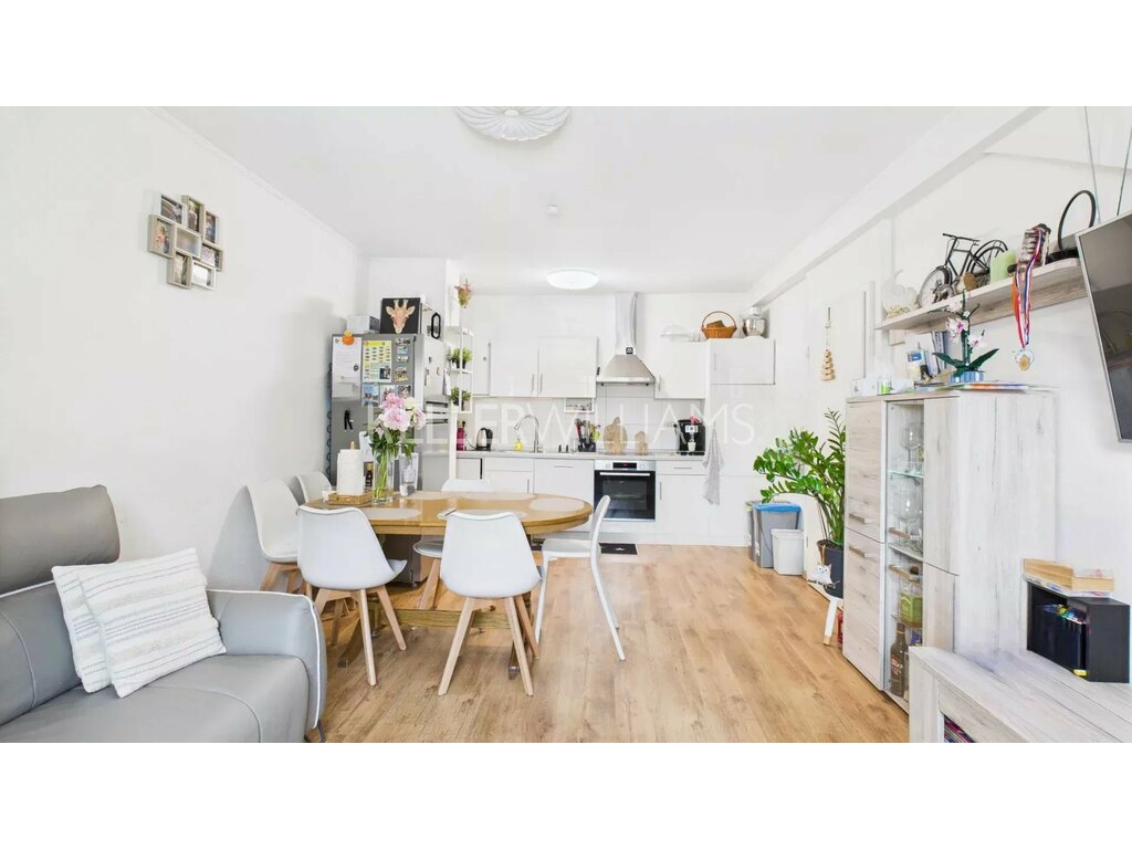 Ce bien lumineux offre un vaste espace de vie ouvert, regroupant harmonieusement le séjour, la cuisine équipée et la salle à manger. Il comprend également deux chambres confortables et une salle de douche moderne avec WC.