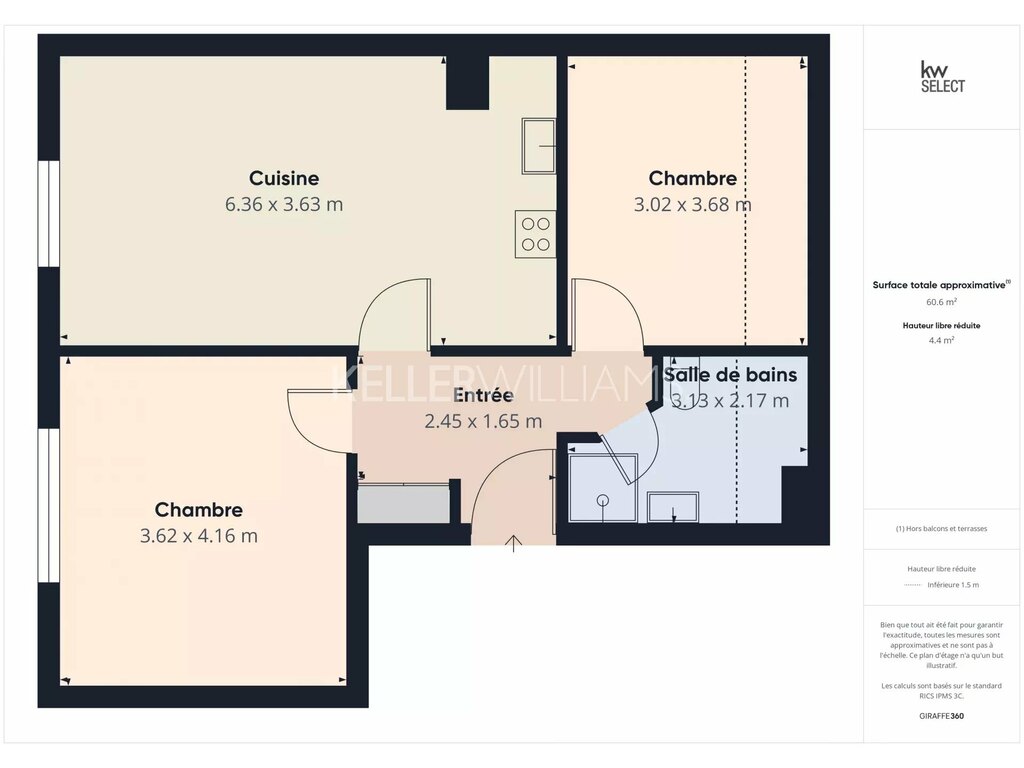 Avec une surface habitable de 62 m², cet appartement est idéal pour un couple, une petite famille ou un investissement locatif.
