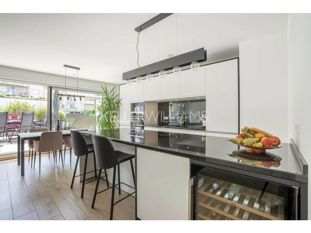 - Cuisine ouverte toute équipée de marque Kichechef - plan de travail et crédence en quartz, plaque induction Bora avec hotte intégrée, cave à vin AEG, four, micro-ondes, lave-vaisselle, réfrigérateur intégré, ensemble de marque Siemens.