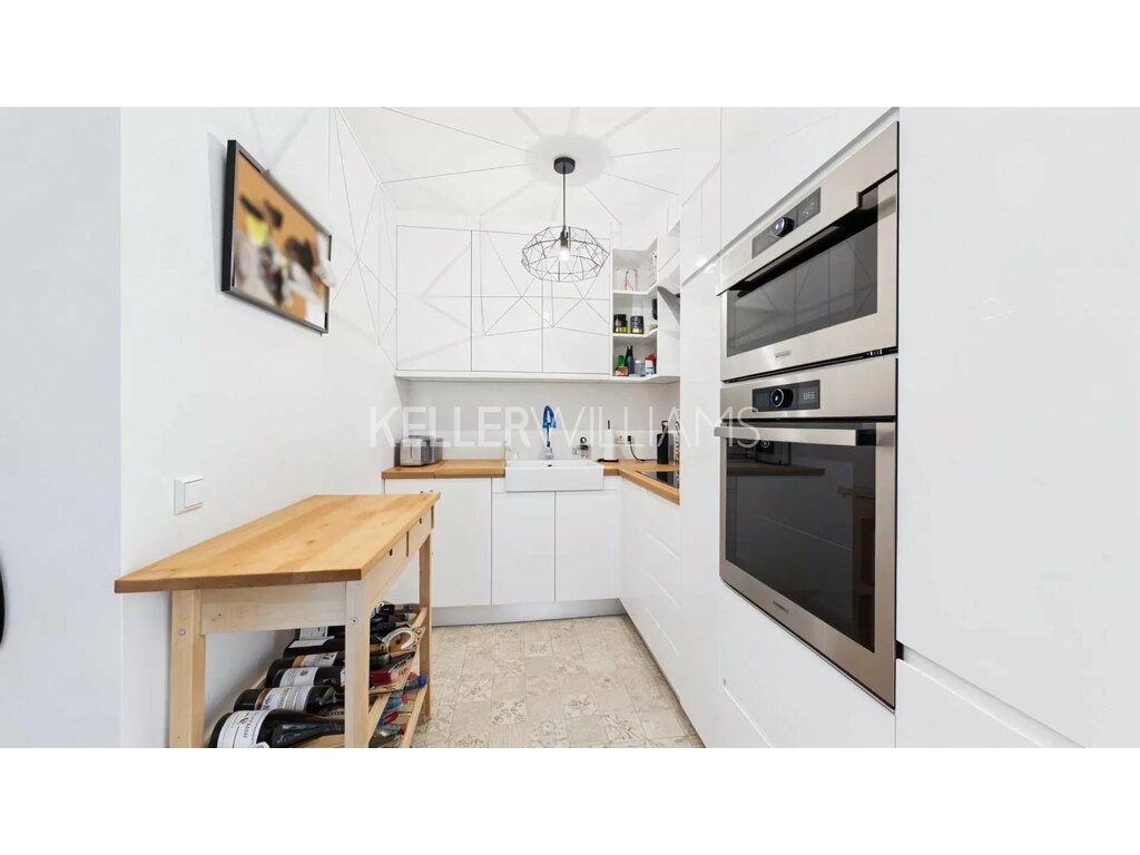 - Un espace de vie d’environ 25 m2 avec cuisine équipée ouverte et accès sur le balcon;