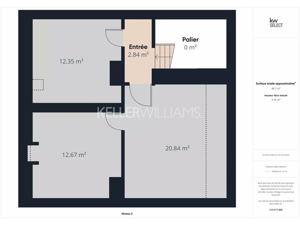Le dernier étage (environ 45 m² au sol) est un grenier avec un fort potentiel d'aménagement.