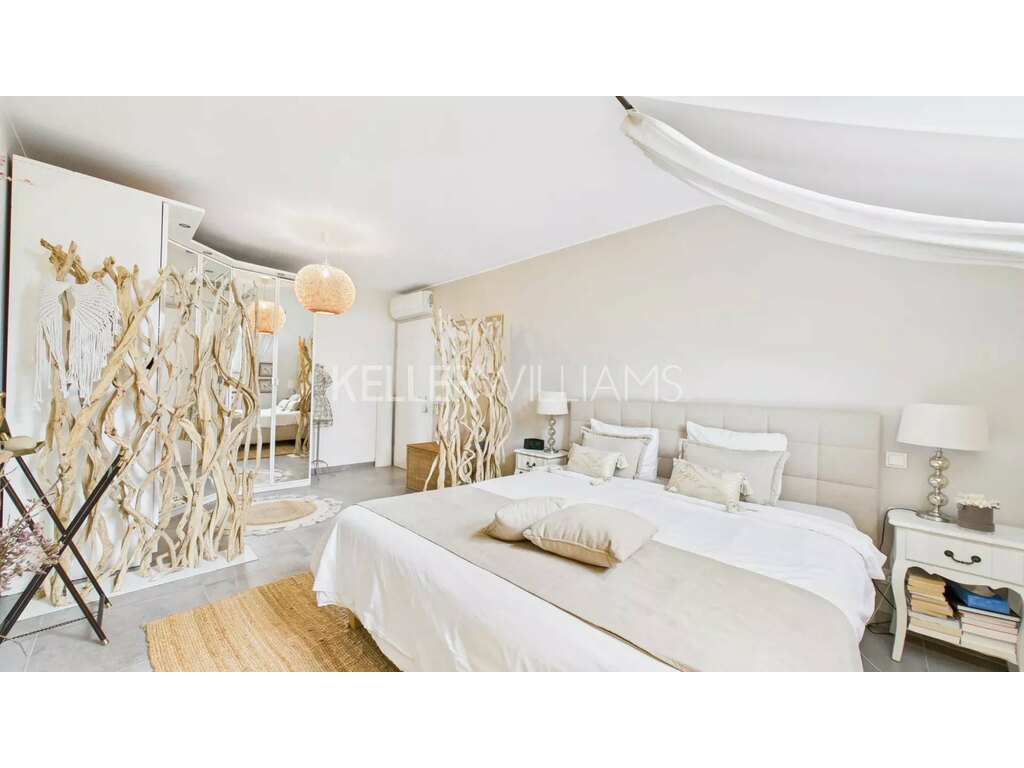 L’appartement climatisé dispose de cinq chambres, dont une actuellement aménagée en dressing.