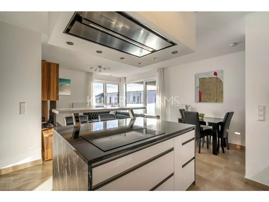 - Cuisine ouverte toute équipée - plan de travail en quartz, piano induction, hotte intégrée semi-professionnelle, four, micro-ondes, lave-vaisselle, réfrigérateur intégré, congélateur intégré.
