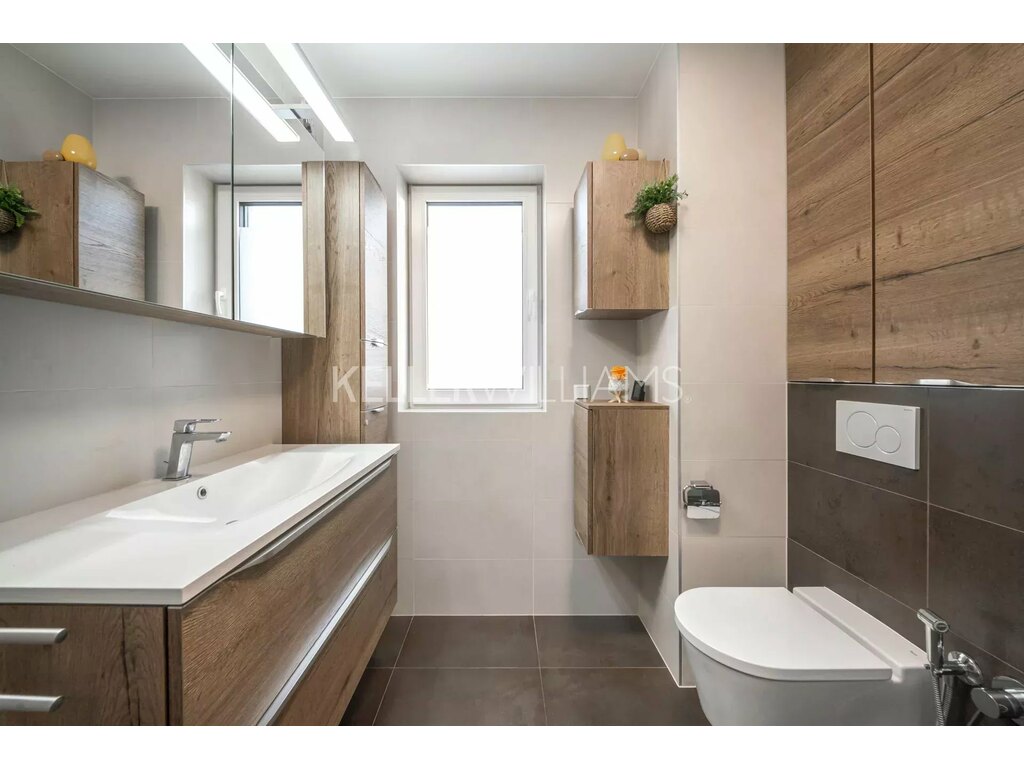 - Salle de bain entièrement carrelée avec douche italienne, grande meuble vasque, radiateur sèche-serviettes et WC suspendu (5,5 m2)