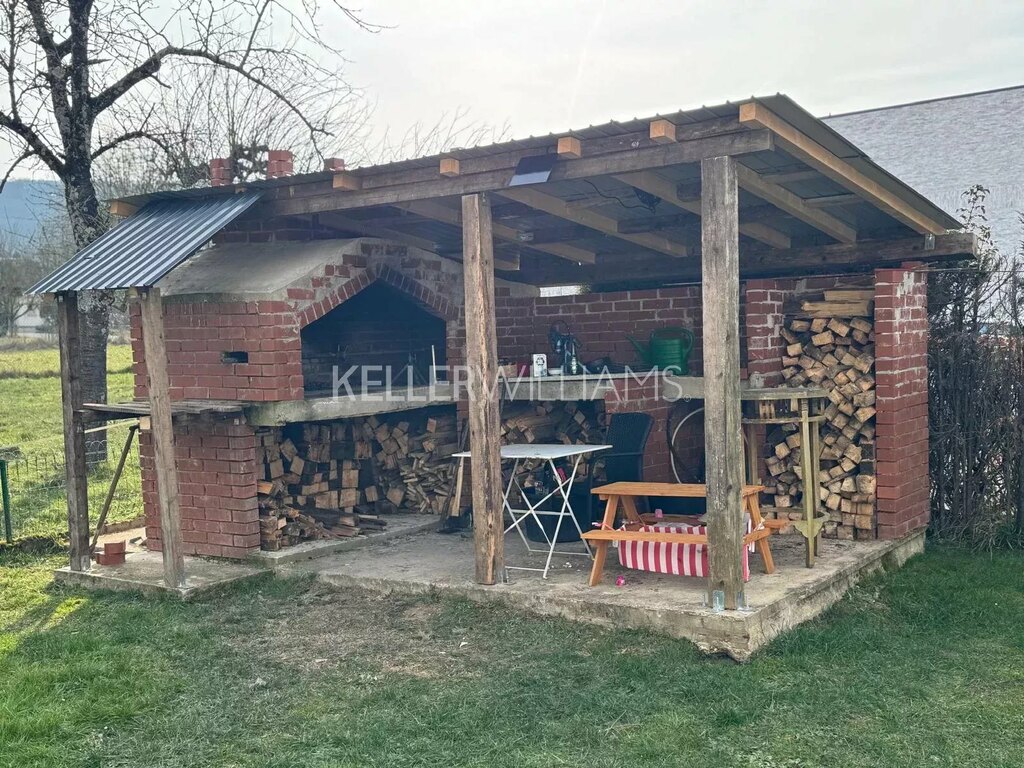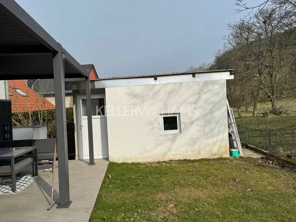 Terrain de 6,15 ares avec grande terrasse, jardin, cabane de jardin et espace barbecue