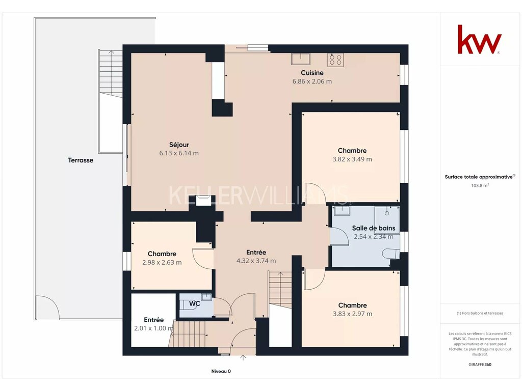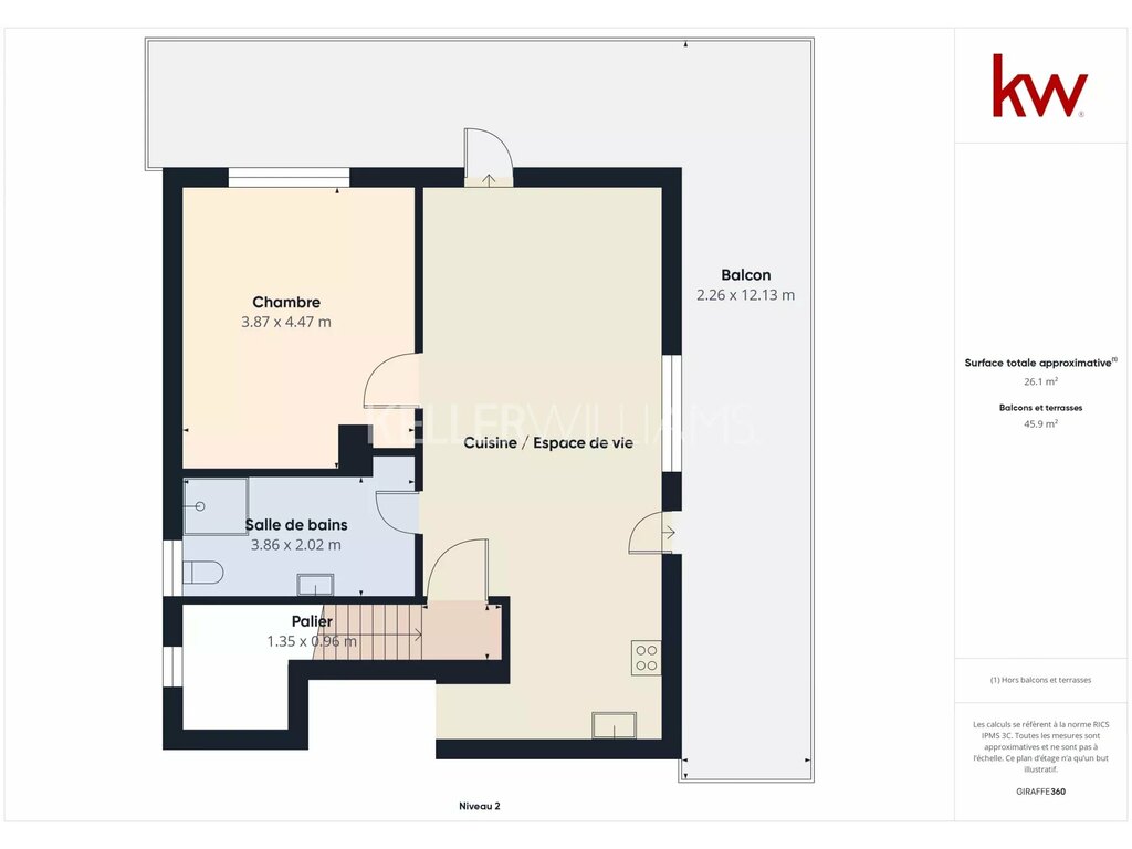 Magnifique terrasse de 46 m² exposée sud-ouest pour profiter de magnifiques couchers de soleil