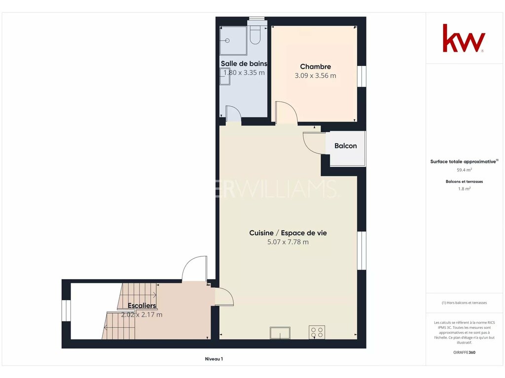 Deuxième étage – Penthouse intégré 56,8 m² :