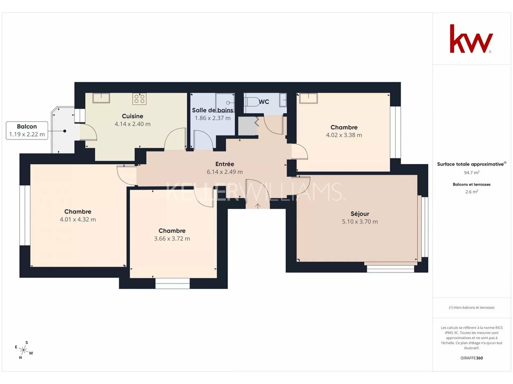 Implanté au 3ᵉ étage d’une résidence bien entretenue (sans ascenseur), ce bien lumineux offre de beaux volumes et une configuration idéale pour une famille ou un investissement locatif.