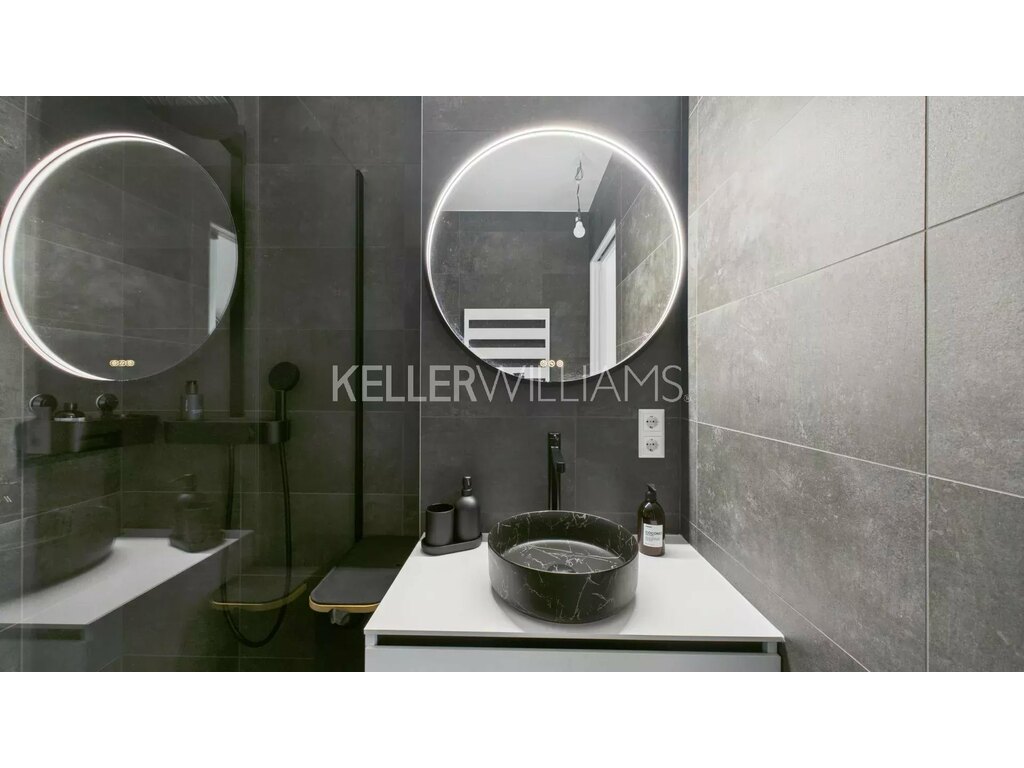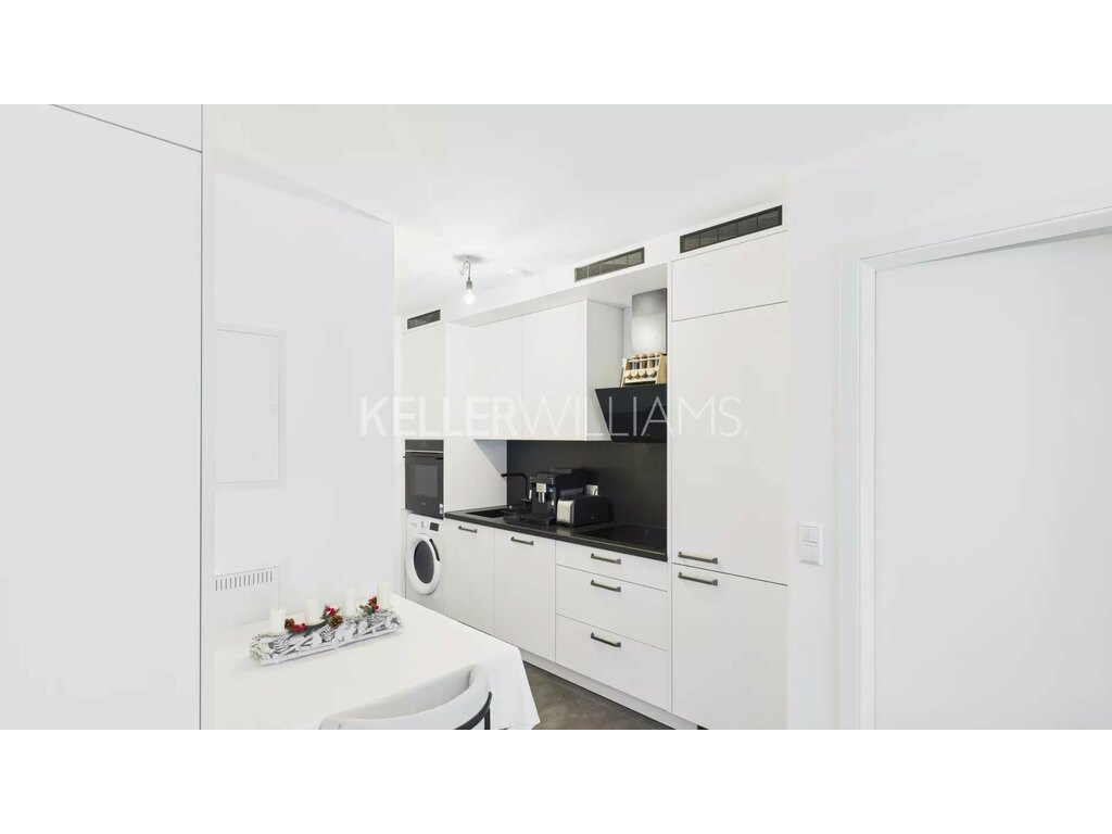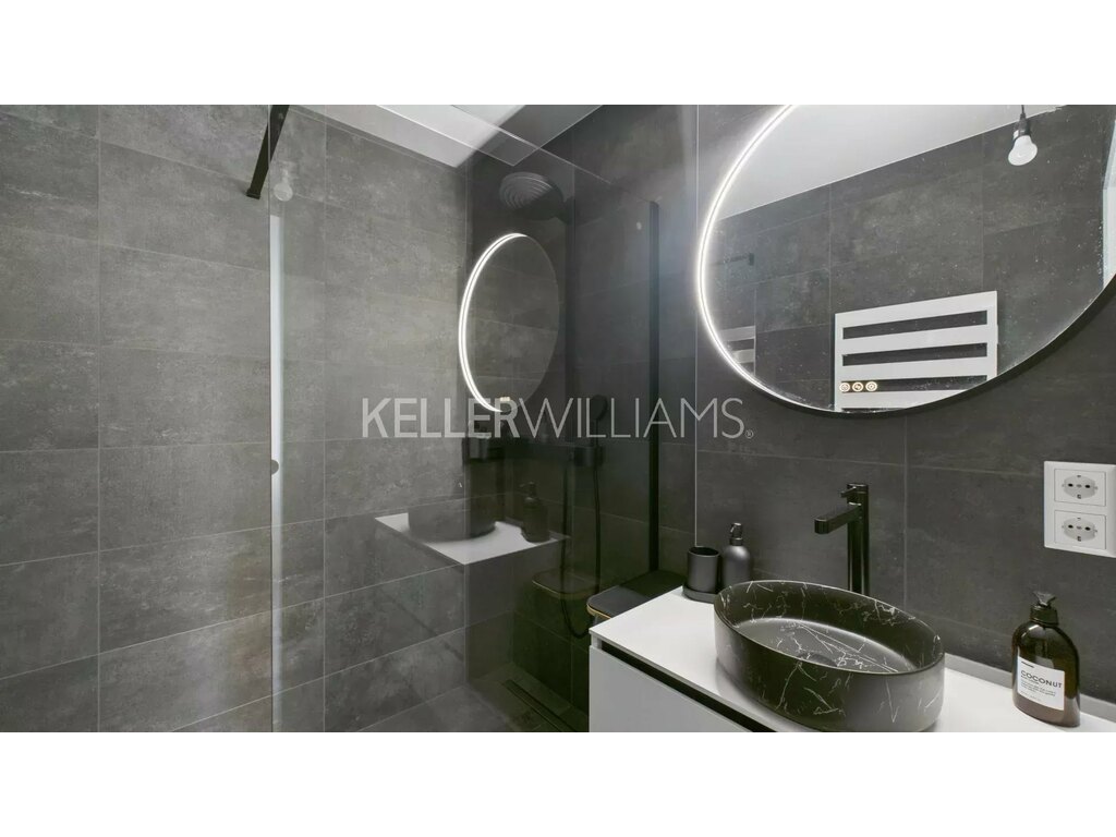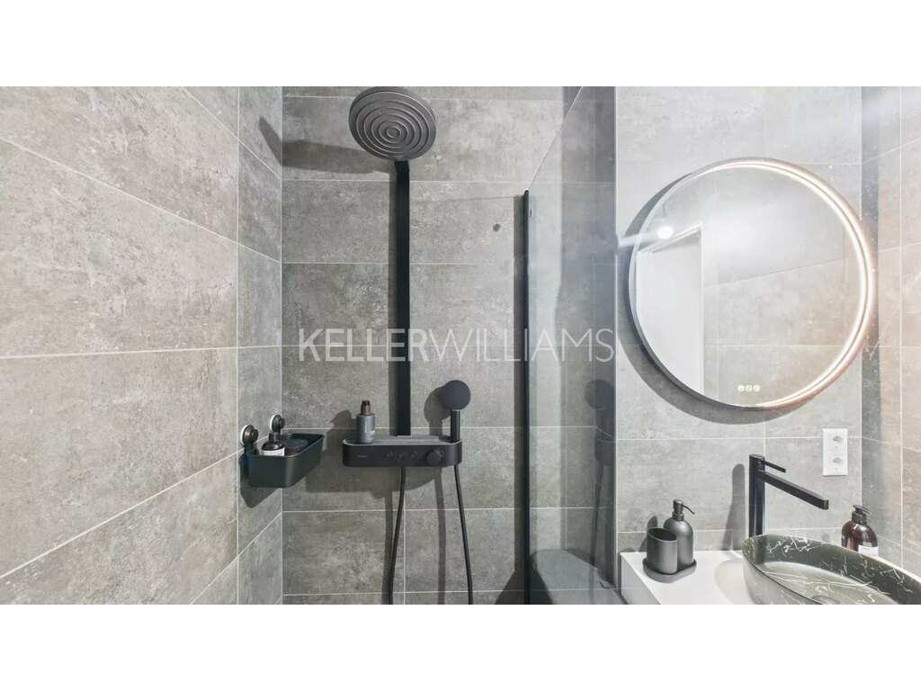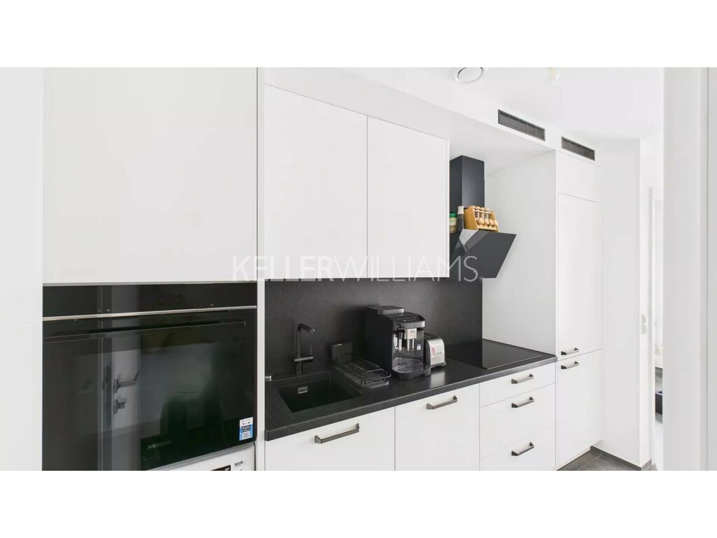 • Cuisine neuve sur-mesure Kichechef, entièrement équipée et ouverte sur le séjour : Four encastré Siemens / Plaque à induction / Réfrigérateur - congélateur AEG / Hotte pan inclinée AEG / Lave-vaisselle AEG