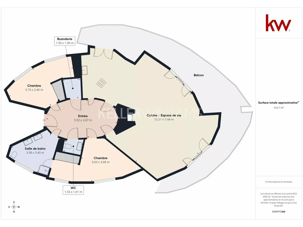 - Spacieuse terrasse accessible depuis le séjour et la cuisine