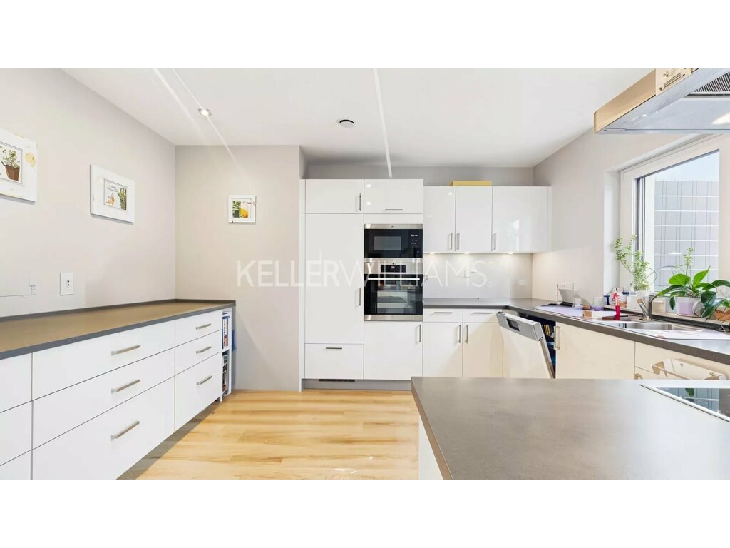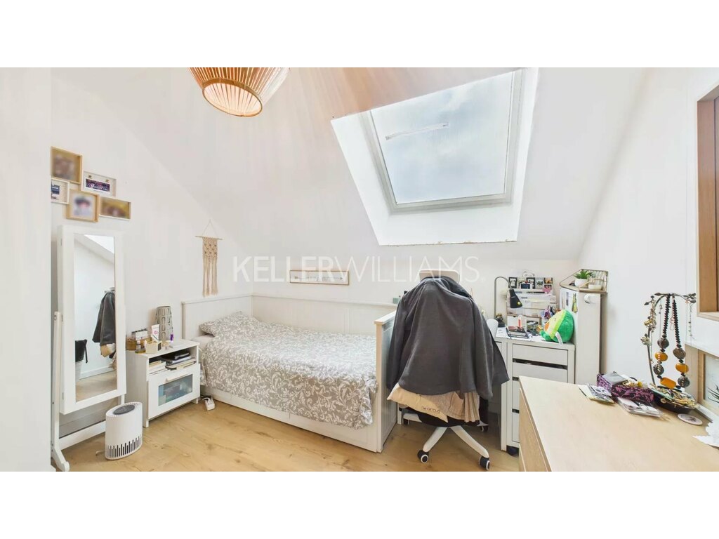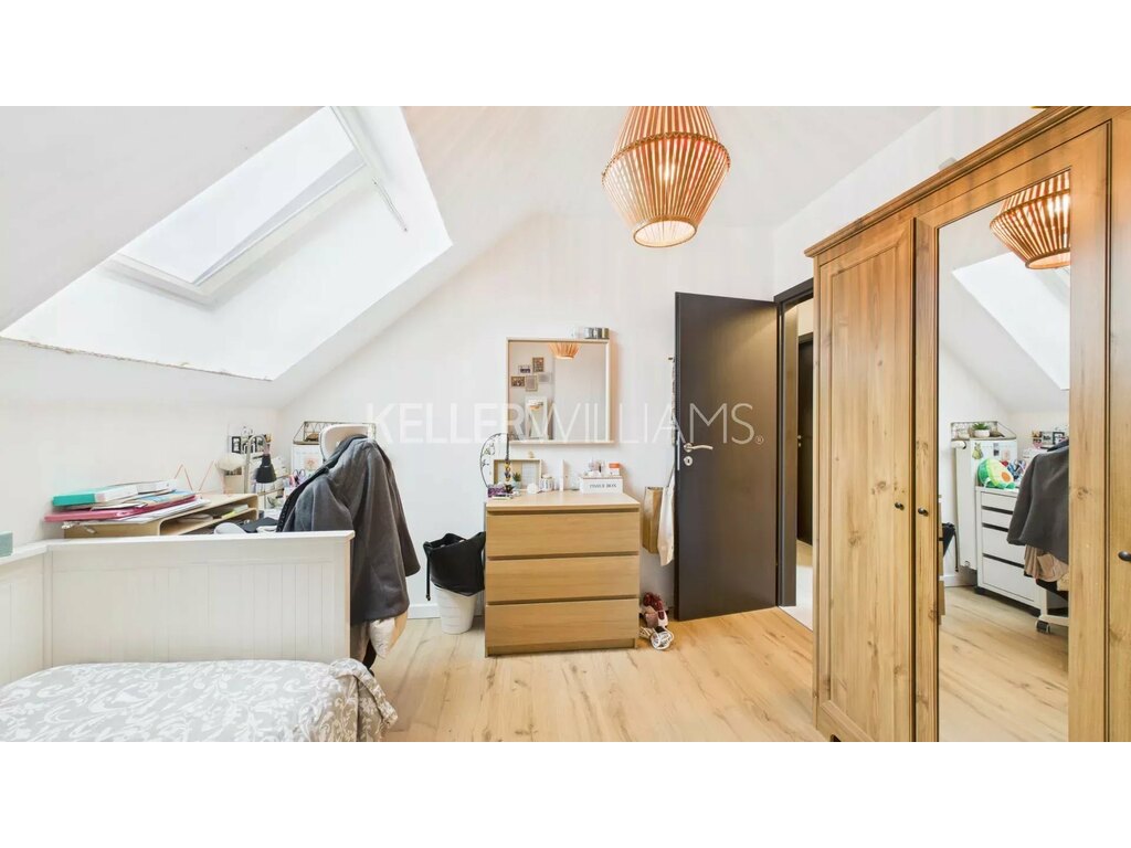 Le rez-de-jardin propose un vaste espace de vie de près de 50 m² comprenant un salon, une salle à manger et une cuisine ouverte. Cet étage inclut également des toilettes séparées ainsi qu’un bureau de 7 m², parfait pour le télétravail ou une petite pièce polyvalente. Depuis la salle à manger, un accès direct mène à la terrasse et au jardin, créant une continuité harmonieuse entre intérieur et extérieur.