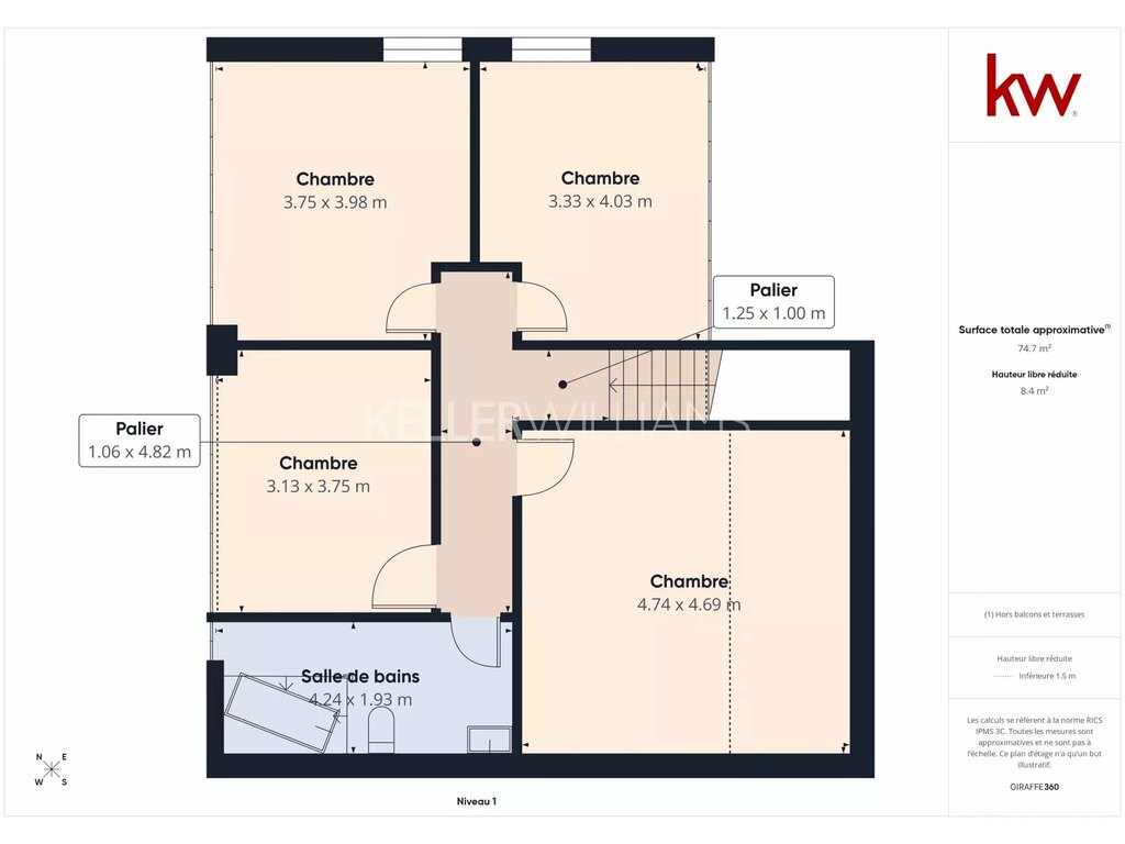 • Surface totale : ± 223 m²