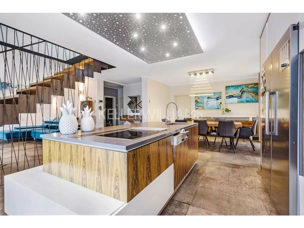 • Cuisine ouverte entièrement équipée avec électroménager haut de gamme (Bosch, Siemens, Samsung)