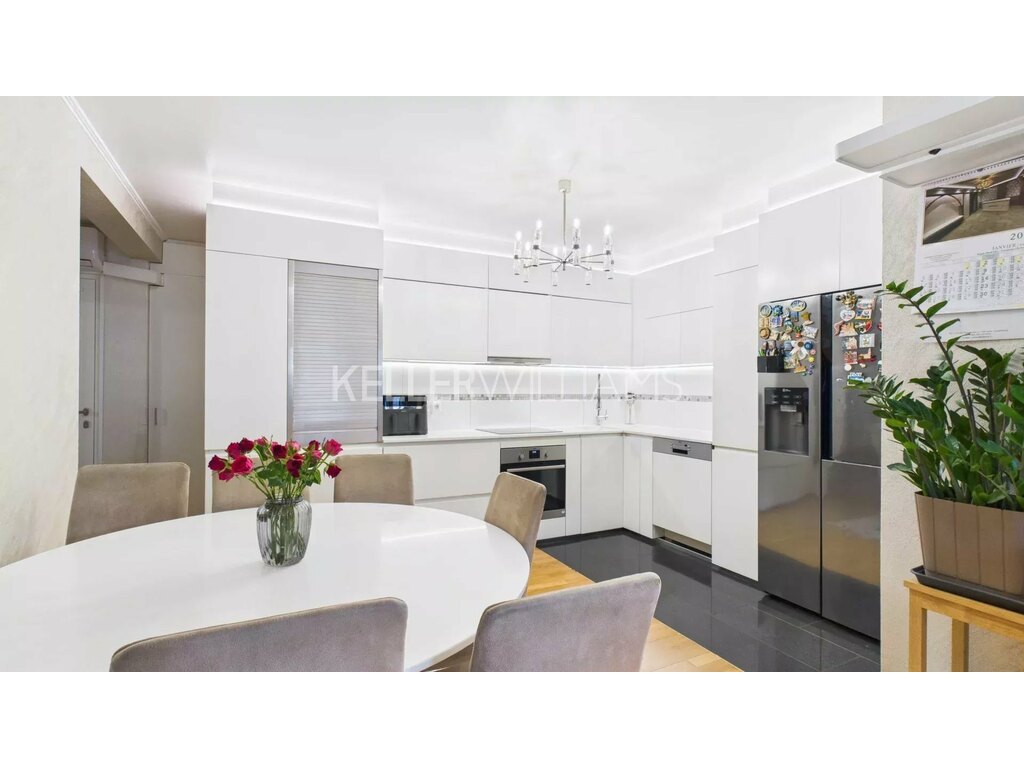 Meubles sur mesure avec de nombreux rangements, fenêtres récentes, appartement très lumineux et orienté ouest. Dispose d’un monte-charge. Aucun travail à prévoir.