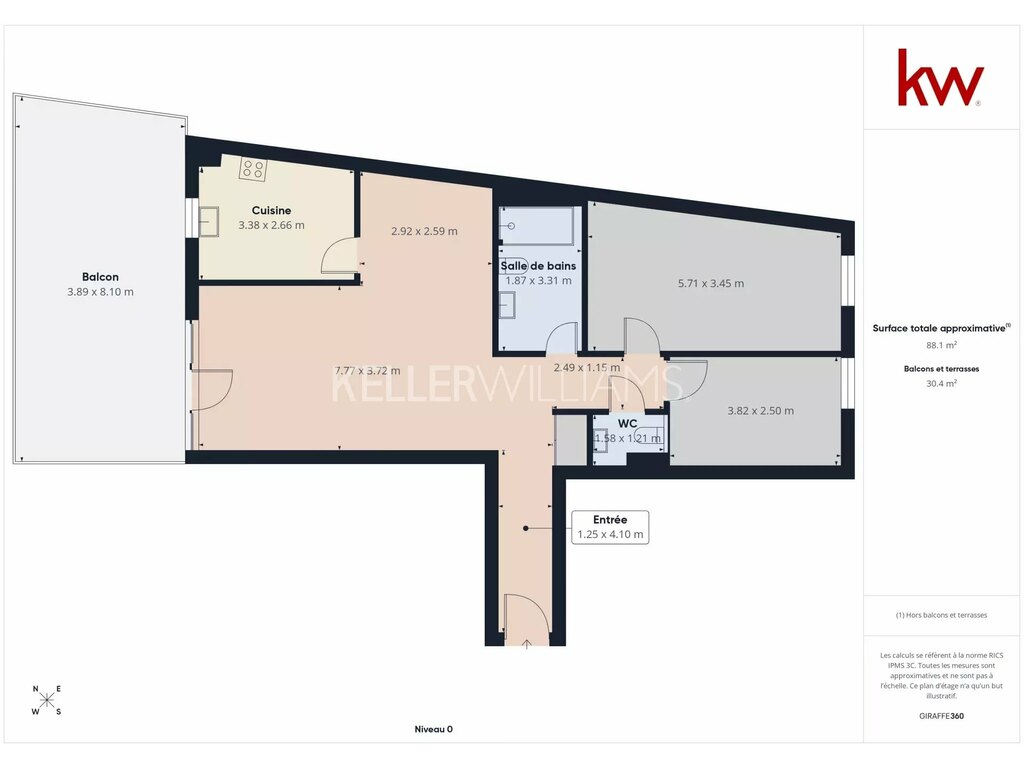 • Surface habitable : 88 m² (hors terrasse)