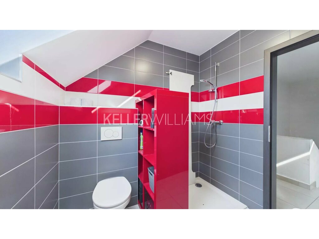 Rez+1: Hall, salle de douche avec WC, une chambre d'enfant de 18m2; une grande chambre de 25m2; Un espace parental 32m2 avec chambre, salle de douche/bain, Wc et un coin dressing;