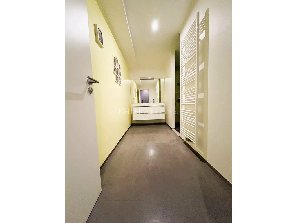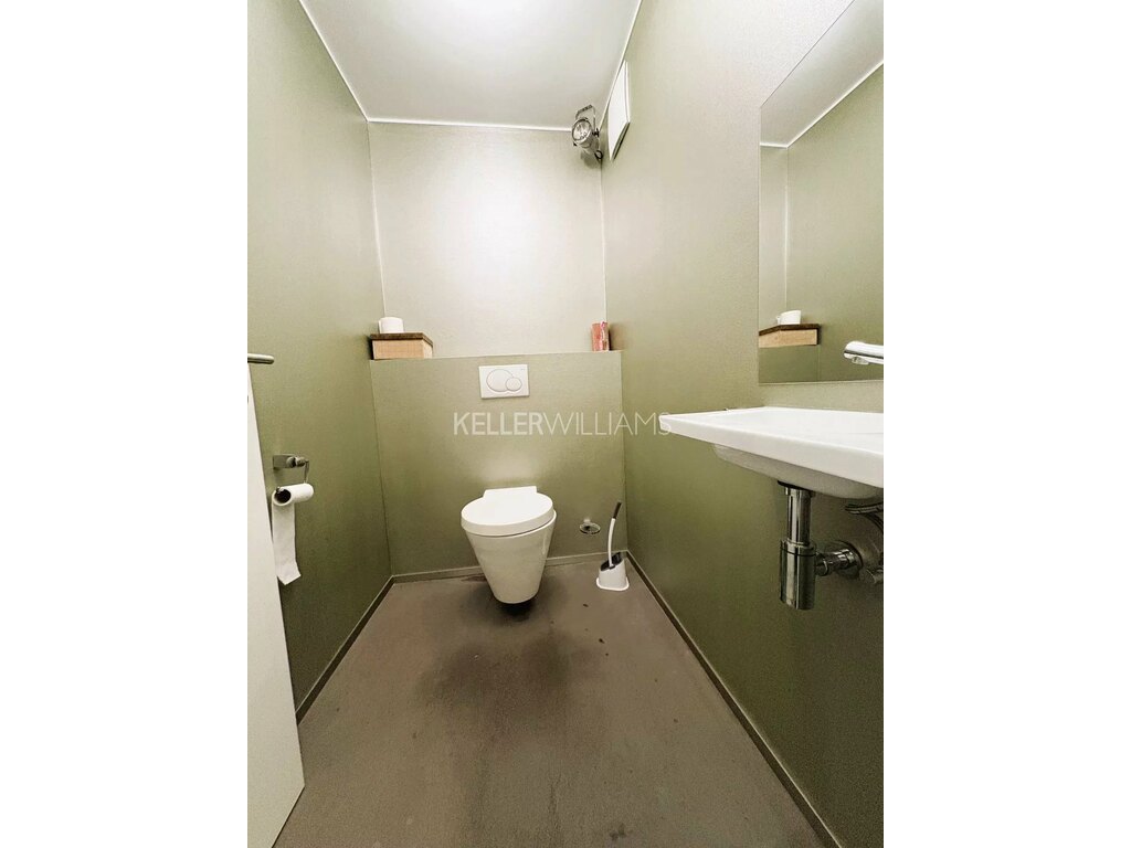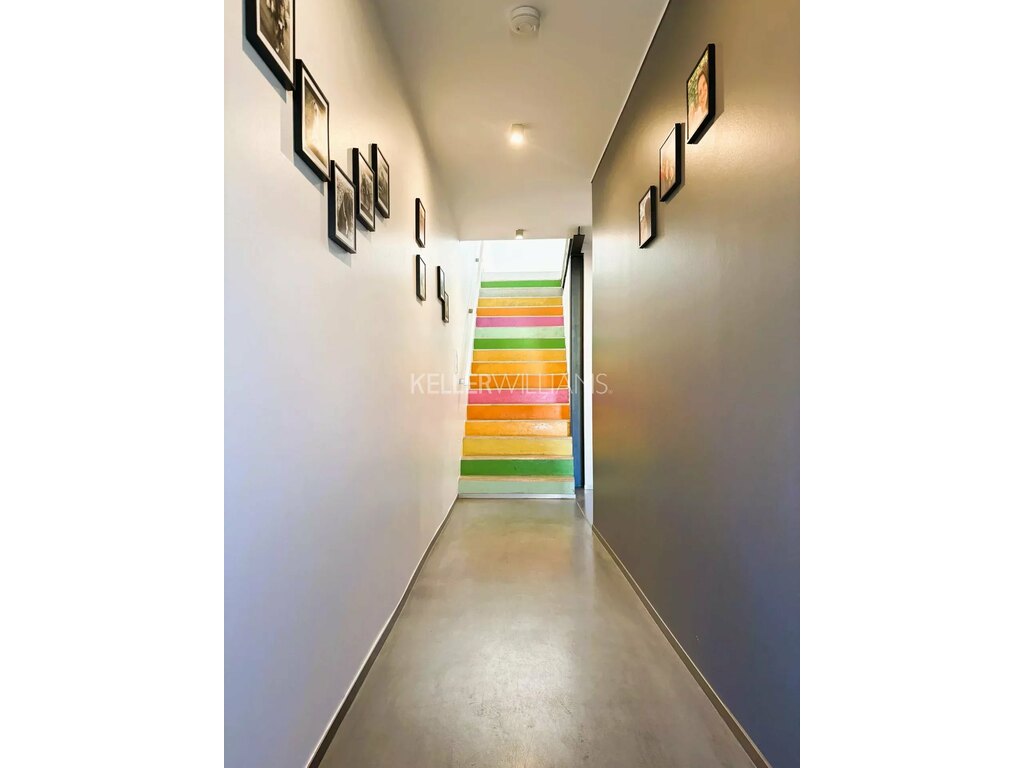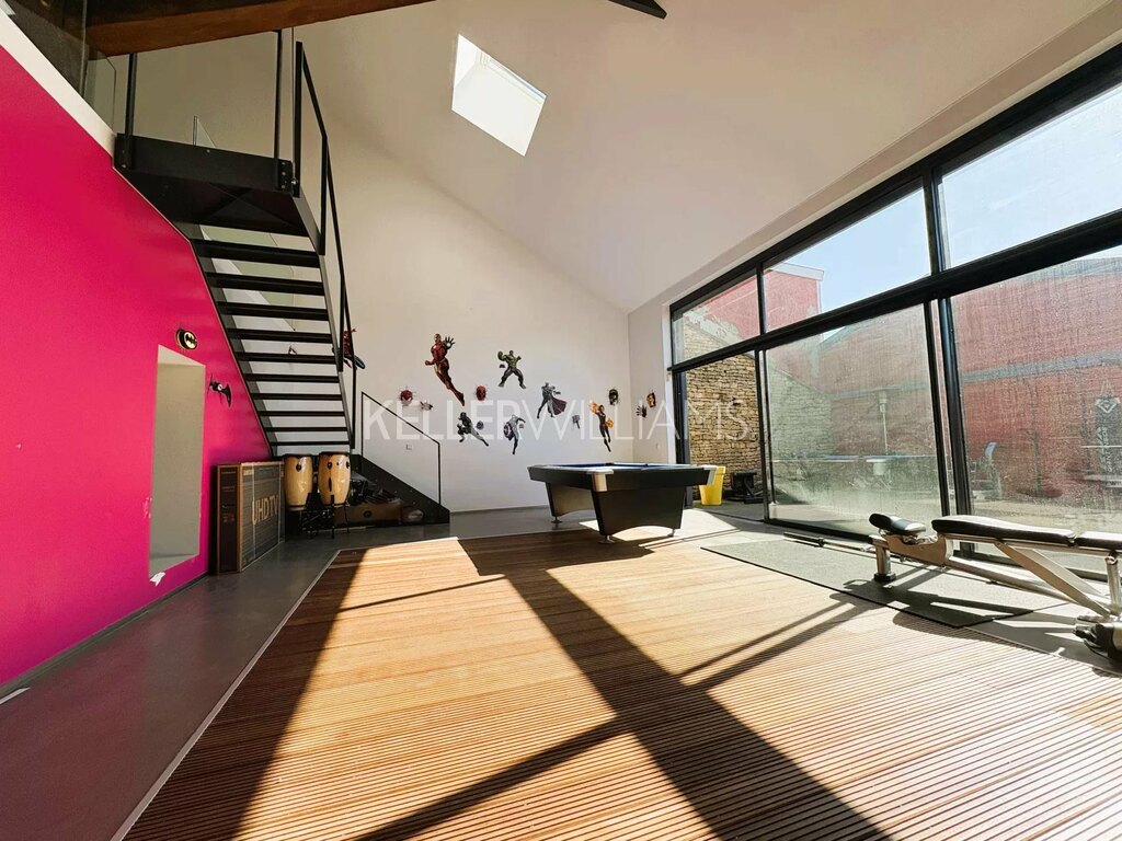 Un autre espace baigné de lumières avec un poêle à bois offre un volume de 50m² ouvert sur une terrasse de +- 50m² et donnant sur le jardin de 4 ares.