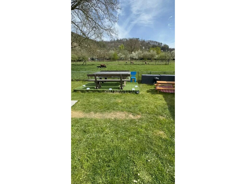 Terrain de 6,15 ares avec grande terrasse, jardin, cabane de jardin et espace barbecue