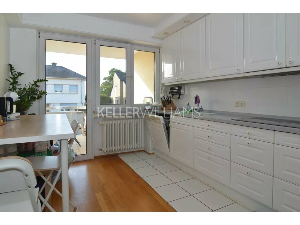 KW Select, spécialiste de l’immobilier à Luxembourg, vous propose en exclusivité ce magnifique appartement de 2 chambres d'une surface de 105 m ² à Cents. Ses chambres spacieuses et de beaux volumes. Les chambres sont côté calme avec une vue sur le jardin. L'appartement est traversant et lumineux, il se trouve au 1er étage d'une résidence et se compose comme suit :