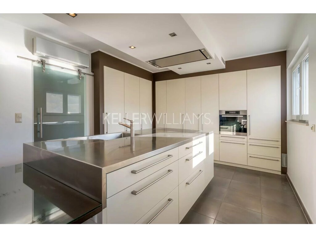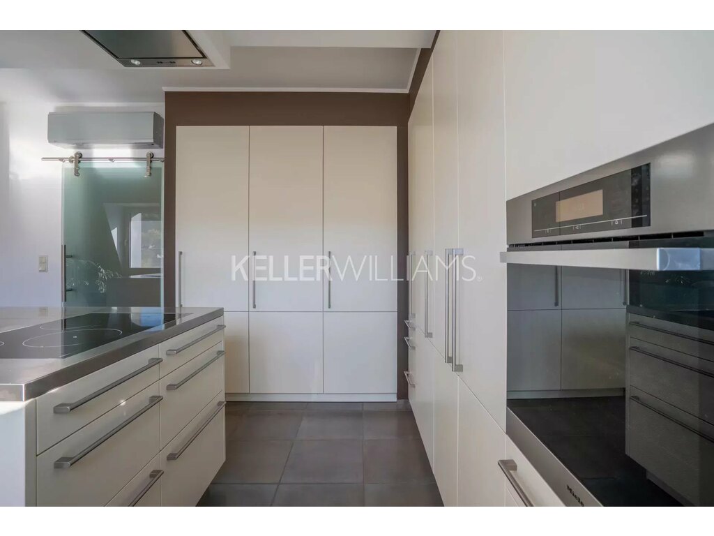 La cuisine ouverte est équipée d’un ilot central, d’électroménager de qualité (four Miele, plaque induction Küppersbusch, hotte à télécommande Novy, réfrigérateur et congélateur Siemens...) et de nombreux rangements astucieux et bien pensés.
