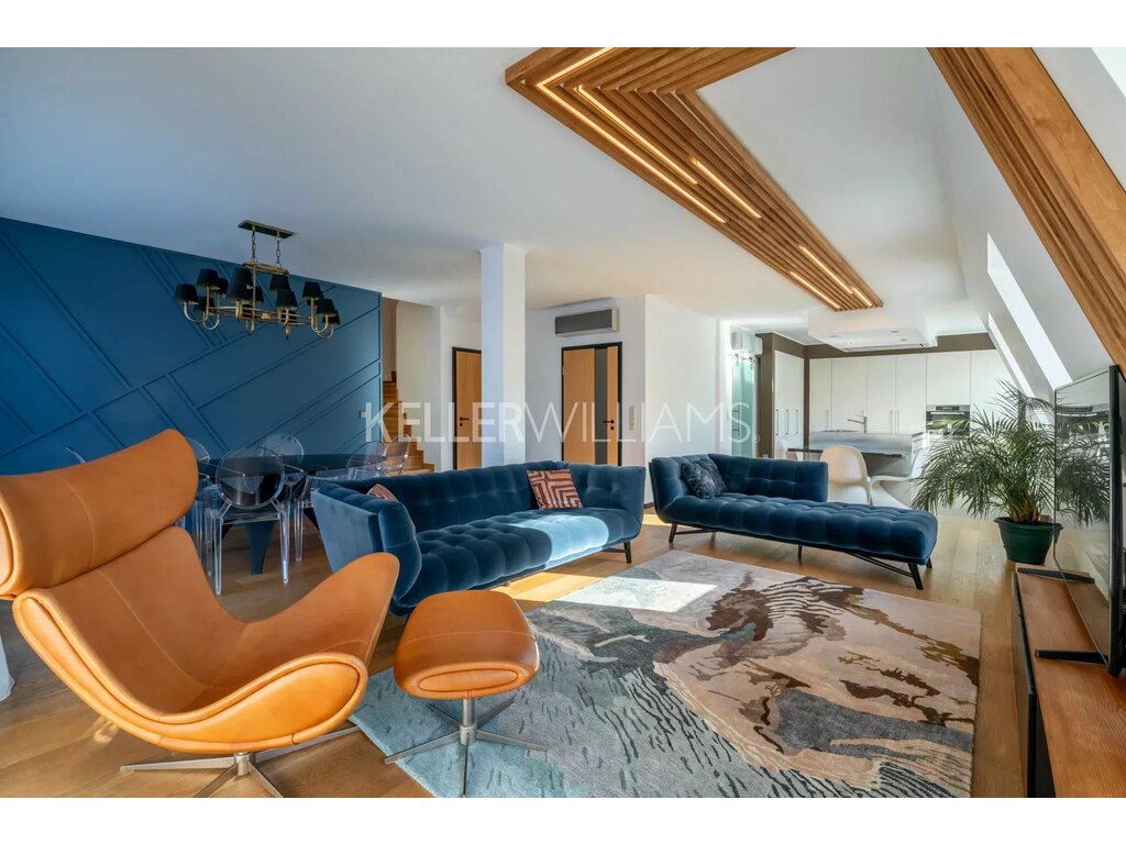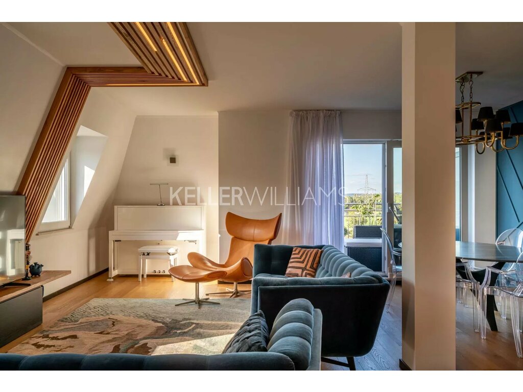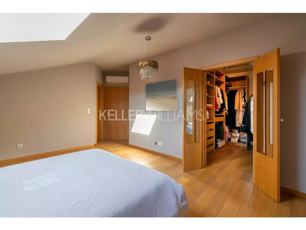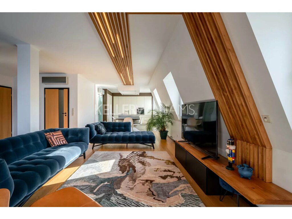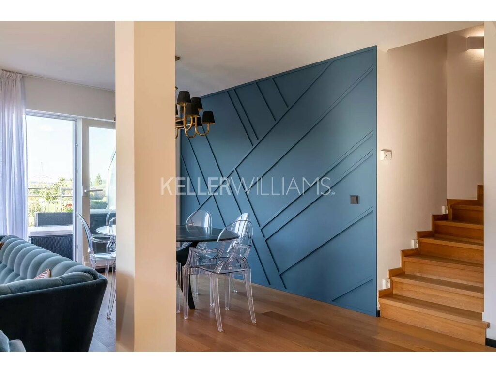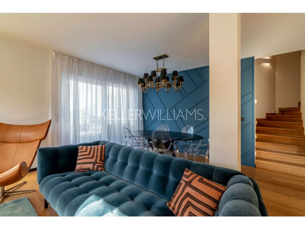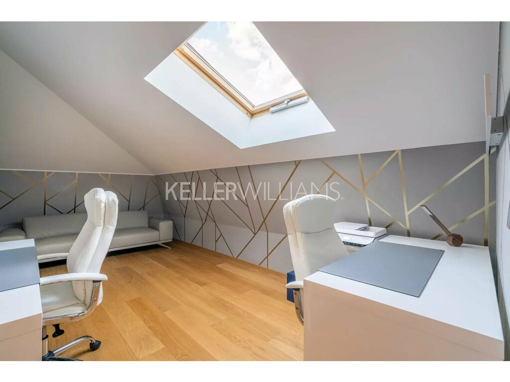 Le ton est donné, ce duplex perché aux derniers étages d’un immeuble récent, offre les avantages d’une maison : espace, luminosité, vues imprenables sur la nature, calme, finitions et équipements haut de gamme (porte d’entrée blindée), vidéophone, parquet et portes en chêne naturel, climatisation réversible dans tout l’appartement, triple vitrage, volets roulants électriques partout, velux à fermeture automatique et détecteur de pluie, etc.).