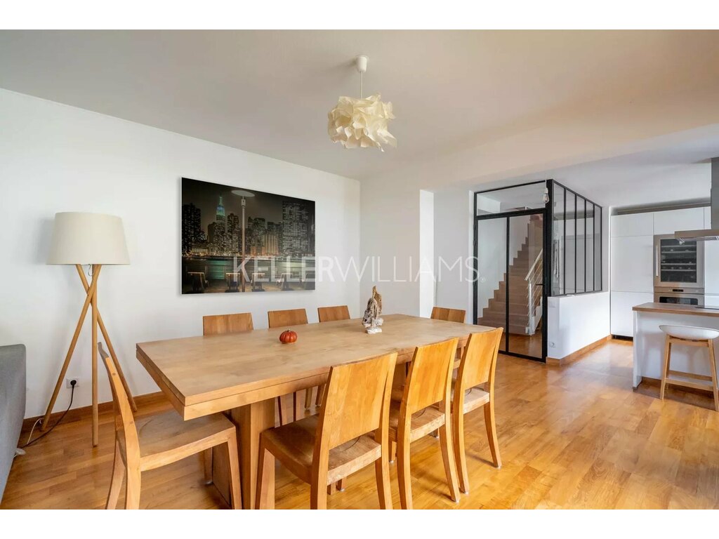 La salle à manger adjacente est idéale pour des dîners conviviaux avec vos proches, tandis que la cuisine ouverte moderne est équipée de tout le nécessaire pour préparer des repas délicieux.